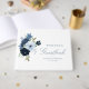Ce livre d'hôtes présente de belles fleurs aquarelles peintes à la main avec un thème bleu marine et bleu clair mariage. N'hésitez pas à personnaliser le texte et les couleurs.