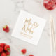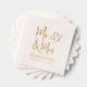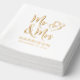 Serviettes élégantes pour votre fiançailles, dîner de répétition, réception de mariage et autres événements mariages mettant en vedette "Mr & Mrs" dans un grand script chic, une illustration de deux coeurs réunis et votre nom marié et votre date de mariage, le tout estampillé en or réel, argent ou rose feuille d'or.