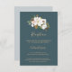Cette élégante carte d'encart de réception magnolia turquoise est parfaite pour un mariage moderne et classe. Le design floral moody est composé de pivoines roses vertes, de magnifiques fleurs de magnolia blanches et de coton avec de l'or et des feuilles verts dans un arrangement luxueux sur un arrière - plan turquoise. Personnalisez cette carte détaillée de boîtier avec vos informations de réception et incluez également votre adresse de site mariage !