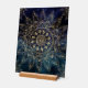 OEuvre de henné de mandala tribale en faux or jaune blanc avec un dégradé bleu et violet de minuit. Ce design mandala girly floral avec des points d'or et des formes géométriques est parfait pour l'usure quotidienne ou la décoration maison. C'est un design aztèque traditionnel avec une touche moderne, créant une illustration élégante et décorative dessinée à la main.