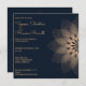 Elegantes und modernes Mandala auf einem dunkelblauen Hintergrund Hochzeitseinladung. Text kann für Ihren Hochzeitstag oder jede Art von Feier personalisiert werden.