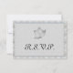 Notre carte de réponse RSVP mariage argenté et élégante est le moyen idéal pour ajouter une touche de sophistication et d'élégance à votre journée spéciale. Les cloches d'église en argent dans un cadre décoratif en argent vous aideront à express votre message à vos invités mariages avec un look élégant et de bon goût. Cette carte est le moyen idéal pour vous assurer que votre papeterie mariage est unique et classe comme votre jour spécial. La carte de réponse est également pratique, offrant un moyen facile et efficace pour les invités de vous informer s'ils sont présents ou non à votre mariage.