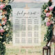 Stylish mariage assignation en acrylique dépoli pour 16 tables maximum avec "trouver votre siège" dans un script chic et vos noms et date mariage réunis par un coeur dans une simple typographie moderne.