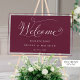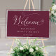Faites une déclaration et bienvenue à vos invités à votre mariage avec cet élégant panneau acrylique bordeaux ! Possibilité d'utiliser ce panneau pour n'importe quel événement. Design avec un cadre élégant et élégant dans une belle couleur bordeaux et de beaux détails de calligraphie manuscrits modernes en blanc. 12" x 18" est notre taille par défaut, vous pouvez choisir parmi plusieurs options de taille. "REMARQUE IMPORTANTE : Les petites tailles sont livrées avec un bloc de bois pour se tenir, les plus grandes tailles ont besoin d'un chevalet ou d'une surface pour se tenir afin qu'elles ne se déchaîne pas. Dimensions du panneau de la photo de démonstration avec support : 24" x 36"