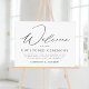 Signe mariage simple et moderne non branché avec "Welcome" affiché dans un script de calligraphie noir moderne avec un arrière - plan acrylique blanc. Personnalisez le panneau mariage acrylique débranché en ajoutant un message personnalisé et vos noms. Le panneau de cérémonie débranché noir et blanc a été conçu pour coordonner avec notre collection de mariage Modern Elegance et est disponible en d'autres couleurs.