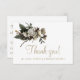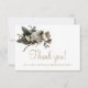 Classy élégant bouquet de fleurs blanches et ivoire hivernales avec feuillage et branches saisonnières et un script de calligraphie manuscrit en or chic faisant un beau mariage merci simple carte. ++++++++++++++++ Facile à personnaliser avec votre texte de part et d'autre ! +++++++++++ Parfait pour les mariages à thème fleuri fin automne ou hiver.