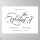 Ce panneau d'accueil mariage noir et blanc (affiche) est orné d'une calligraphie tourbillonnant élégante et romantique avec un script formel. Pour une personnalisation plus avancée de cette conception, cliquez sur le BOUTON OUTIL DESIGN BLEU ci-dessus !