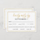 Ce mariage en or moderne simple mais élégant ou site de réception RSVP boîtier avec bordures d'or et élégant script lettré à la main peut être utilisé conjointement avec une carte d'invitation à la réception ou une carte de faire-part/réception mariage (vendue séparément) et fournit des informations pour que vos invités puissent répondre via votre site mariage, par e-mail ou texte, ou via une carte de réponse. Facile à customiser avec votre propre date de réponse et choix de repas. Parfait pour la réception qui se tient dans un cadre simple, rustique, élégant, extérieur, grange, jardin, ferme, ou tout lieu mariage moderne ou tendance. Facile à personnaliser avec votre propre photo et informations de réception de mariage. Conception de T.K. Goforth.