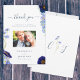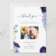 Ces élégantes cartes de remerciement élégantes de fleur sauvage d'aquarelle couleur mariage sont parfaites pour un mariage d'été boho fleuri. Avec un magnifique script typographique pour personnaliser avec votre message de remerciement personnalisé, les noms de mariée et mariée, date mariage et ajouter une photo en utilisant le modèle facile à utiliser. Des fleurs sauvages de prairie uniques, y compris des coquelicots de fleurs de maïs, des cosmos et oublions-moi les notes avec feuillage délicat peint par l'artiste Catherine Sweetman en bleu de fleurs de maïs, bleu roux, bleu marine, violet et vert. Idéal pour le jardin botanique ou le mariage d'été du printemps extérieur merci. Trouver les articles correspondants dans la suite moderne fleur sauvage Blue mariage