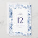 Elégant Mariage Floral Bleu Carte Numéro de table