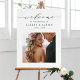 Panneau de bienvenue mariage moderne (affiche) avec calligraphie verte et élégante et photo. Pour une personnalisation plus avancée de cette conception, cliquez sur le lien Personnaliser supplémentaire pour modifier la police, la taille et la couleur.