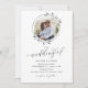 Cet élégant faire-part de mariage photo présente votre photo en haut, entourée d'une simple couronne gris fusain. Il est jumelé à un script de calligraphie romantique.