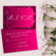 Ce mariage charmant RSVP en rose fushia présente un beau thème vintage qui rappelle le parchemin ancien, avec un cadre élégant d'éléments de défilement et de courbes cramoisi. Le cadre pivotant ornemental entoure la typographie classique en blanc, avec le titre R.S.V.P. traditionnel. Le verso de la carte contient tous les détails nécessaires, comme la place pour les noms des invités et les options pour leur présence/non-présence.