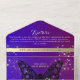 Elégante, unique, luxe chic violet et or parties scintillant mariage l'invitation tout-en-un avec papillon sophistiqué, symbole de renaissance spirituelle, l'espoir, et la vie. Ajoutez votre photo, les détails du mariage et rsvp.