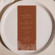 Elégant fleur sauvage terracotta brûlé orange 4x9" Mariage floral Table Menu Cartes Dîner Plat Menu en calligraphie script moderne. Vous pouvez trouver une collection d'articles correspondants et la taille 5x7 sur notre magasin VelvetPaperCo.