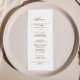 Cette élégante carte de menu moderne calligraphie est parfaite pour un mariage rustique. Le design sobre et élégant est caractérisé par une typographie de script classique et sophistiquée en noir et blanc. Ce menu peut être utilisé pour une réception de mariage, un dîner de répétition, une douche nuptiale ou tout événement.