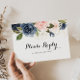 Cette carte postale rsvp à la carte florale hivernale élégante est parfaite pour un mariage simple. Le design présente de belles peintes à la main bleu foncé, bleu, bleu marine, rose, rousse, fleurs d'or et feuillage vert, entassés dans d'élégants bouquets.