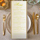 Apportez une touche intemporelle à votre réception de mariage avec cette élégante carte en ivoire et en mariage jaune. Conçu dans des tons crème doux et une police jaune doré raffinée, ce menu classique conviendra parfaitement aux mariages traditionnels, romantiques ou formels. Entièrement personnalisable - modifiez les noms, la date, l'emplacement et les détails du repas pour correspondre à votre célébration. Une belle façon d'ajouter un fini poli à votre table.
