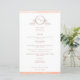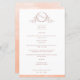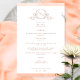 Élégant menu Mariage d'aquarelle de pêche monogram