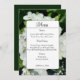 Il s'agit d'une élégante carte de menu mariage à fleurs blanches avec des fleurs d'hydrangée blanche photo avec un arrière - plan vert de forêt. Il est parfait pour une célébration de mariage d'été ou d'automne dans le jardin.