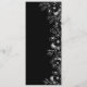 Élégant menu mariage moderne boho noir et rouge avec coeur de corde argentée et dentelle dorée fleurie.