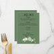 Elégant menu plat de mariage, parfait pour votre journée spéciale! Design vert et fleuri.