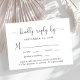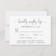 Elégante carte RSVP mariage avec "gentiment répondre par" dans un script de calligraphie chic avec des swashes, une typographie moderne simple, menu personnalisé options d'entrée et vos noms réunis par un coeur sur le dos.