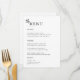 Elégant Menu Table de mariage Cartes Menu Plat Men