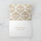 Copyright © 2019 Socialite Designs Inc. Personnalisez notre élégante carte de remerciement avec motif et fleuron en or. Le design comporte une police de couleur or bruni sur fond blanc et deux élégants motifs de fleuron/spirale. L'intérieur présente un motif damassé et une zone de message personnalisable. Un magnifique modèle de carte qui peut être personnalisé selon vos envies. La couleur de fond peut également être changée du blanc.