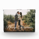 Modernes Foto schwarz mit Ihrem horizontalen Foto mit "Frohe Weihnachten" in einem fett weißen Kalligrafiebuffer dargestellt. Personalisieren Sie die Vorderseite des Weihnachtsblocks mit Ihrem Familiennamen und dem Jahr.