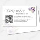 Elegant wedding RSVP card featuring soft lavender florals on a clean white background with a modern QR code RSVP option. Designed for today’s weddings, this minimalist response card allows guests to easily scan and reply online while maintaining a timeless, sophisticated look. Perfect for modern, classic, garden, and evening weddings. Coordinates seamlessly with matching invitations and full wedding stationery suites.