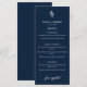 Add a refined and cohesive touch to your reception tables with this navy blue botanical wedding menu, designed to complement elegant and modern wedding themes. Featuring a deep navy background accented by a delicate white botanical sprig, this vertical menu card offers a clean and structured layout for listing your wedding meal courses in style. With distinct sections for starters, main courses, and desserts, this customizable menu is perfect for showcasing your personalized wedding dinner or buffet selections. The classic navy and white color palette coordinates beautifully with formal table settings, floral centerpieces, and matching wedding stationery from the same collection. Whether used at a seated dinner or plated reception, this botanical wedding menu enhances your guests' dining experience while adding a polished, design-forward element to your tablescape. Ideal for upscale weddings, city venues, or romantic garden receptions, it brings elegance and personalization to every place setting.