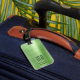 Eleganter Mit Monogramm Tag mit grünem Gepäck.