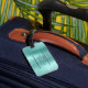 Eleganter Mit Monogramm Tag mit grünem Gepäck.