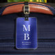 Eleganter Mit Monogramm Navy Blue Brushed Metallic Gepäcktag