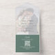 Annoncez votre grand jour avec cette invitation de mariage verte et élégante, avec un modèle photo moderne et un scénario de typographie classique superposé. Conçue dans un format simple joint-and-send, cette invitation est à la fois élégante et économique. Le style triplé offre suffisamment d'espace pour un code QR sur votre site Web de mariage en ligne, la réponse de l'invité RSVP et des informations détaillées. Aménagée dans les tons de terre botanique, cette invitation équilibre parfait entre élégance et fonctionnalité pour le couple moderne.