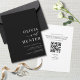 Dieses elegante Hotel in einer Hochzeitseinladung bietet moderne Kalligraphie und eine klassische, kühne Schrift. Mit schwarzem Hintergrund ist es elegant und frisch. Auf der Rückseite finden Sie einen QR-Code, mit dem Sie Ihre Hochzeitswebsite und die Anfahrtsbeschreibung für die uAwg verlinken können.