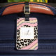 Elegante, moderne Hübsche Cheetah Design Gepäckmarke mit rosa und pastellgelben Linien. . Perfektes Geschenk für sie, Freund, Schwester, Mutter. Kann Ihren Namen bearbeiten und personalisieren. Mehr Designs gibt es in meinem Laden. Made by cmK.store.