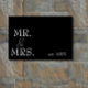 Dieses elegante, moderne, minimalistische "MR. & MRS." ist die Haustür perfekt für das elegante, moderne Paar. Stilvolle weiße Typografie auf einem klassischen schwarzen Hintergrund schafft einen zeitlosen und zeitlosen Look. Personalisieren Sie sich mit einem Heiratsjahr, einem Sitzungsjahr oder einem anderen Jahr, das Bedeutung für eine besondere Touch hat. Ein perfektes Geschenk für Neuvermählte/Hochzeiten, Jubiläen oder Hauswärme.