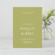 A minimalist wedding invitation featuring a refined olive green and white palette, paired with elegant serif typography and a soft script accent. The clean, structured layout creates a modern and understated look, perfect for couples who prefer a calm, editorial style.