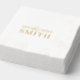 Moderne, kundenspezifische Hochzeitfolie-Servietten zeigen ein "Mr. and Mrs."-Design, das mit Ihrem verheirateten Nachnamen personalisiert werden kann. Einfaches und schicke Design mit eleganter Serifentypografie mit einem Akzent in der Schriftzeichen-Schrift.