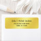 Modern, chic return address label with a shimmering, luscious golden background and a casual handwritten calligraphic script with clean flourishes for the personalized name + a simple, minimalist all caps font for the address.