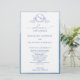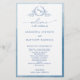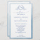 Elégant programme de mariage bleu avec un beau monogramme dessiné à la main et un cadre aquarelle dans les tons bleus. Eléments calligraphiques modernes écrits à la main. Possibilité de modifier et d'ajuster le texte en sélectionnant "Modifier à l'aide de l'outil de conception". Avant avec les détails de la cérémonie mariage, retour avec les noms de la fête de mariage et message de remerciement pour vos invités. Une partie de notre collection "Aquarelle Bleue, Mariage Monogramme Botanique" avec une variété de produits de coordination disponibles.