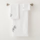 Parfait comme cadeau mariage ou anniversaire, cet élégant ensemble de serviettes de crête est doté d'un monogramme vertical élégant encadré d'une belle couronne botanique. Célébrez votre mariage avec ces serviettes de toilette personnalisées et élégantes !