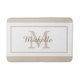 Add a touch of timeless elegance to your bathroom with our custom monogram bath mat, personalized with your name and initial in a beautifully simple and modern design. Featuring the name and initial in a blend of modern and script fonts with beige and brown text, set against a white background along with a beige border, these colors can be changed if preferred. Whether you're updating your own space or gifting to someone special, this piece combines style and individuality in one stunning accent.