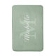 Add a touch of timeless elegance to your bathroom with our custom monogram bath mat, personalized with your name and initial in a beautifully simple and modern design. Featuring the name and initial in a blend of modern and script fonts with sage green and white text set against a sage green background, these colors can be changed if preferred. Whether you're updating your own space or gifting to someone special, this piece combines style and individuality in one stunning accent.