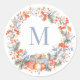 Elegant Monogram Wreath Dusty Blue Modern Runder Aufkleber