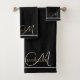 Élégant, minimaliste, monogramme personnalisé avec l'initiale blanche dans une police de swash en écriture gracieuse, serviette de bain de nom or fixe des bordures d'or. Rafraîchissez votre décor de salle de bain avec un style typographique minimaliste.