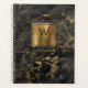Un élégant planificateur avec une image arrière - plan de marbre noir avec des veines d'or. Personnalisez-le avec votre initiale monogramme en police décorative noire et votre nom en lettres compactes noires sur un carré en feuille d'or faux brossé, ainsi que l'année ou autre texte de votre choix en or sur l'arrière - plan en marbre.