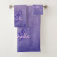Ensemble De Serviettes De Bain abstrait Moderne. Couleurs rose violet bleu. Style Unisex. Accessoire de salle de bain moderne simple et personnalisé. Vous pouvez personnaliser ce design pour vous-même ou pour un proche en changeant votre nom. Un modèle texte est inclus pour personnaliser avec votre monogramme ou texte. Vous pouvez également supprimer l'échantillon monogramme si vous souhaitez commander les serviettes sans texte.